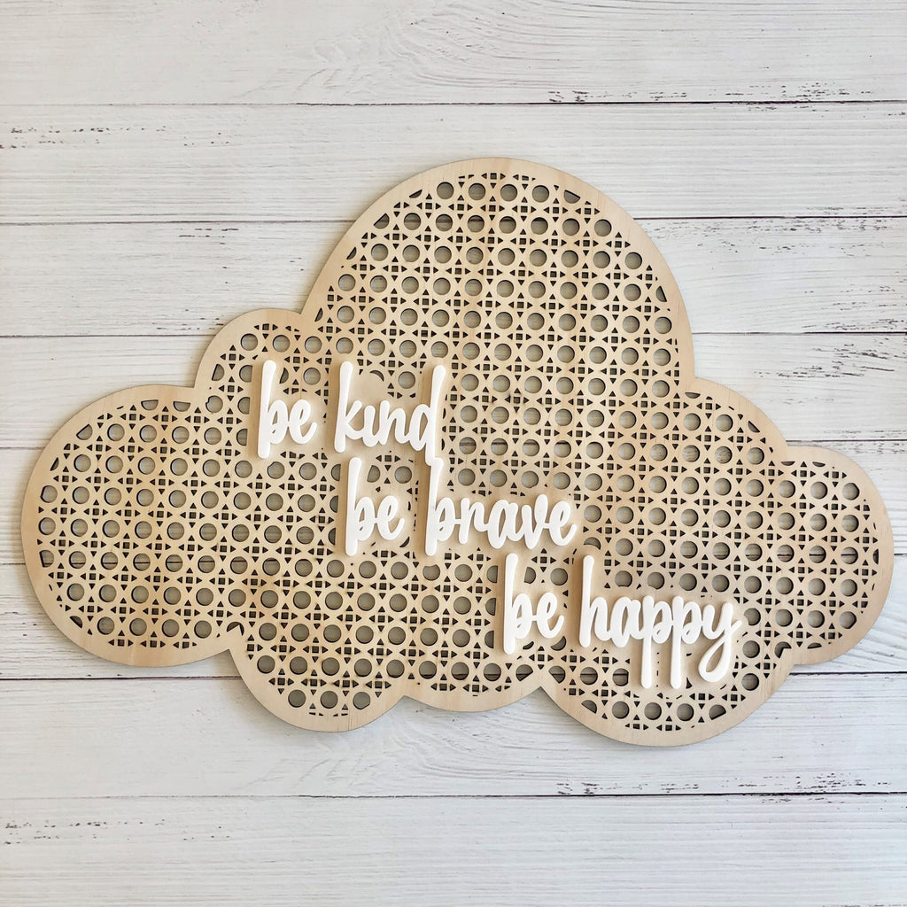 Rattan Look 3D Wall Art – Cloud: Be Kind, Be Brave, BeHappy
