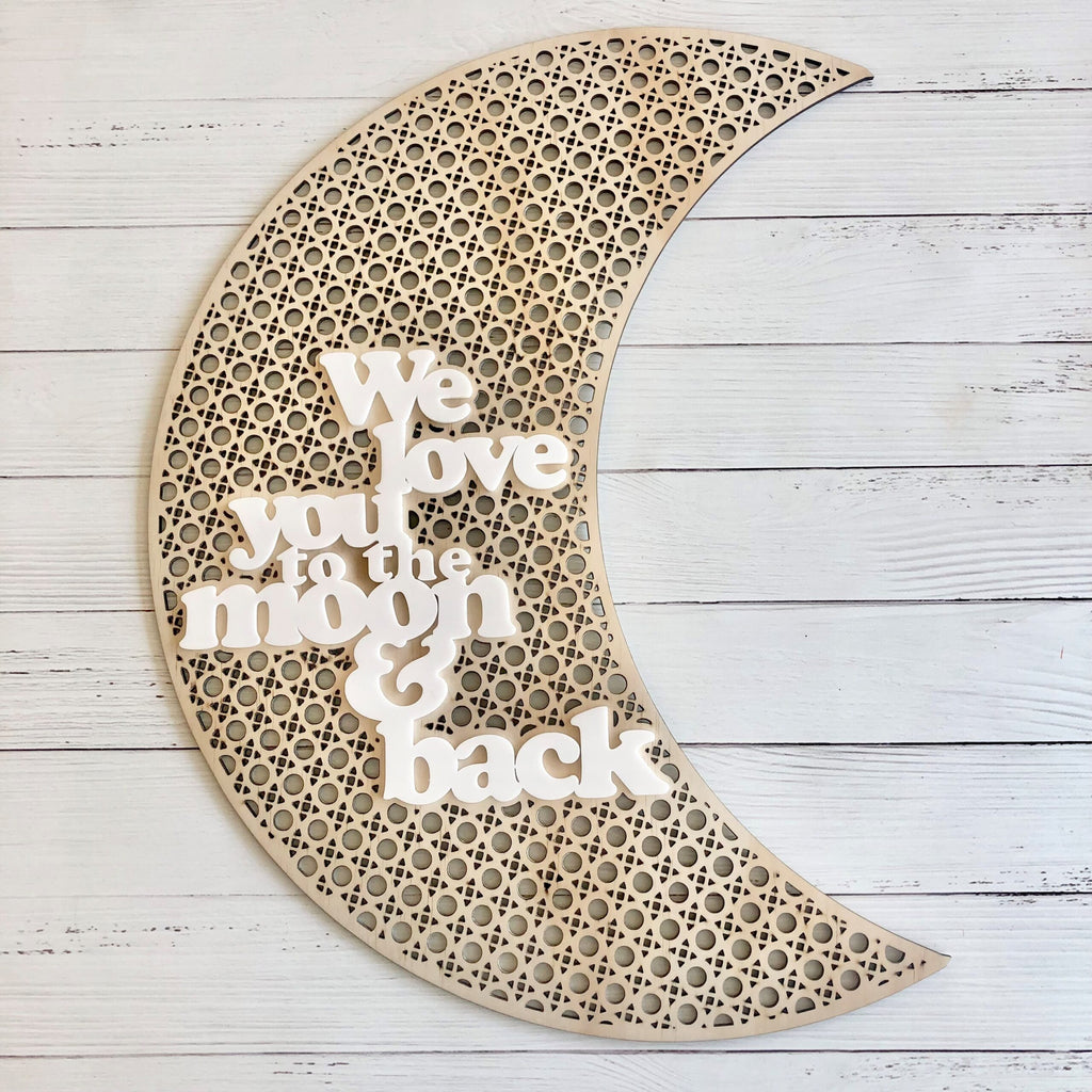 Rattan Look 3D Wall Art- Moon: We Love You To The Moon And Back